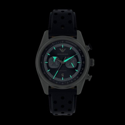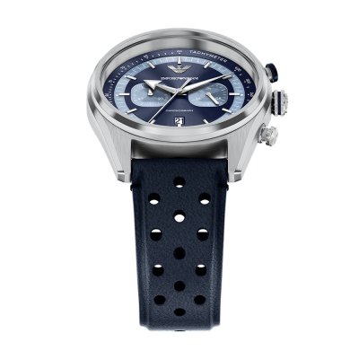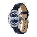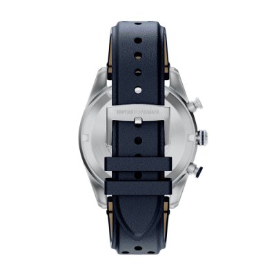 This Emporio Armani watch has a case made of stainless steel with a diameter of 42 mm and is fitted with a leather band. Inside the case lies a Miyota movement and the watch features a Mineral crystal.