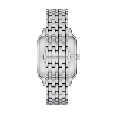 This Emporio Armani watch has a case made of stainless steel with a diameter of 36 mm and is fitted with a stainless steel band. Inside the case lies a Miyota movement and the watch features a Mineral crystal.