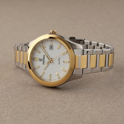 This Festina watch has a case made of stainless steel with a diameter of 42 mm and is fitted with a stainless steel band. Inside the case lies a Miyota movement and the watch features a Mineral crystal.