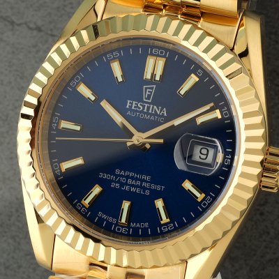 This Festina watch has a case made of stainless steel with a diameter of 41 mm and is fitted with a stainless steel band. Inside the case lies a Soprod movement and the watch features a Sapphire crystal.