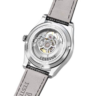 This Festina watch has a case made of stainless steel with a diameter of 40 mm and is fitted with a leather band. Inside the case lies a Soprod movement and the watch features a Sapphire crystal.