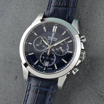 This Festina watch has a case made of stainless steel with a diameter of 39 mm and is fitted with a leather band. Inside the case lies a Ronda movement and the watch features a Sapphire crystal.