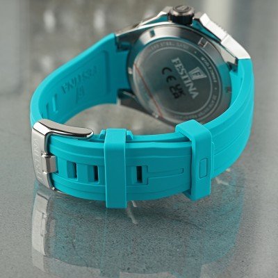 This Festina watch has a case made of stainless steel with a diameter of 45 mm and is fitted with a rubber band. Inside the case lies a Miyota movement and the watch features a Sapphire crystal.