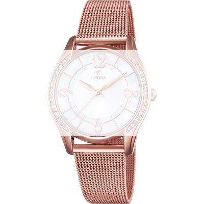 This Festina watch strap is made of stainless steel and is attached to the watch by means of pushpins. The band has a width of 18 mm and is closed by means of a milanese clasp. The strap has a straight mount which means that this strap is suitable for all Festina watches with a straight mount.