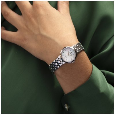 This Festina watch has a case made of stainless steel with a diameter of 23 mm and is fitted with a stainless steel band. Inside the case lies a Miyota movement and the watch features a Mineral crystal.