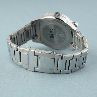 This Festina watch has a case made of stainless steel with a diameter of 45 mm and is fitted with a stainless steel band. Inside the case lies a Seiko Instruments Inc. movement and the watch features a Mineral crystal.