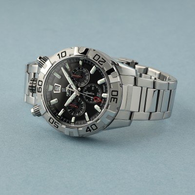 This Festina watch has a case made of stainless steel with a diameter of 45 mm and is fitted with a stainless steel band. Inside the case lies a Seiko Instruments Inc. movement and the watch features a Mineral crystal.