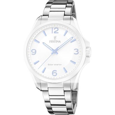This Festina watch strap is made of stainless steel and is attached to the watch by means of pushpins. The band has a width of 20 mm and is closed by means of a deployment clasp with push buttons. The strap has no straight mount which means that this strap is only suitable for the watches listed below.