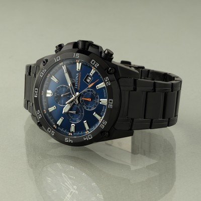 This Festina watch has a case made of stainless steel with a diameter of 47 mm and is fitted with a stainless steel band. Inside the case lies a Miyota movement and the watch features a Mineral crystal.