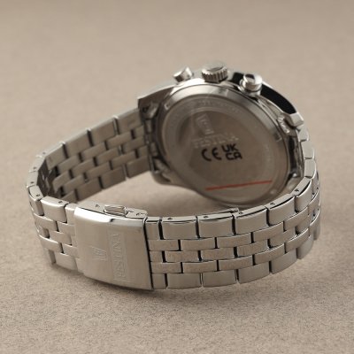 This Festina watch has a case made of stainless steel with a diameter of 43.8 mm and is fitted with a stainless steel band. Inside the case lies a Miyota movement and the watch features a Mineral crystal.