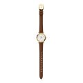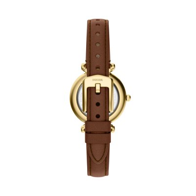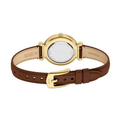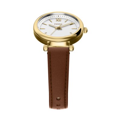 This Fossil watch has a case made of stainless steel with a diameter of 28 mm and is fitted with a leather band. Inside the case lies a Seiko Instruments Inc. movement and the watch features a Mineral crystal.