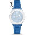 This Fossil watch strap is made of resin and is attached to the watch by means of steel pins. The band has a width of 18 mm and is closed by means of a deployment clasp with push buttons. The strap has no straight mount which means that this strap is only suitable for the watches listed below.