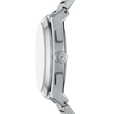 This Fossil watch has a case made of stainless steel with a diameter of 44 mm and is fitted with a stainless steel band. Inside the case lies a Seiko Instruments Inc. movement and the watch features a Mineral crystal.