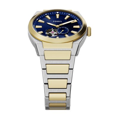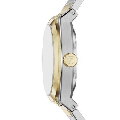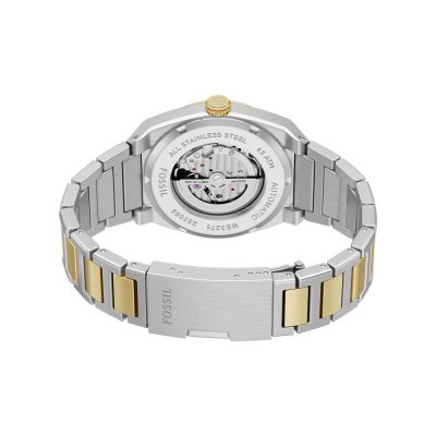 This Fossil watch has a case made of stainless steel with a diameter of 42 mm and is fitted with a stainless steel band. Inside the case lies a Miyota movement and the watch features a Mineral crystal.