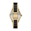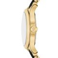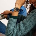 This Fossil watch has a case made of stainless steel with a diameter of 38 mm and is fitted with a ceramic band. Inside the case lies a Miyota movement and the watch features a Mineral crystal.