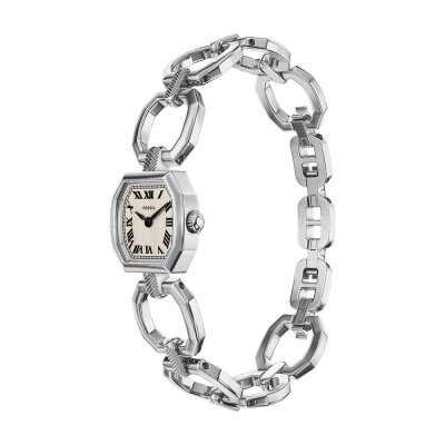 This Fossil watch has a case made of stainless steel with a diameter of 20 mm and is fitted with a stainless steel band. Inside the case lies a Seiko Instruments Inc. movement and the watch features a Mineral crystal.