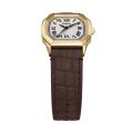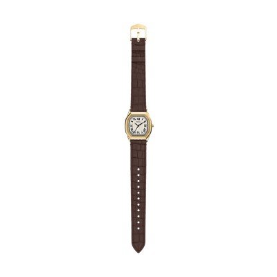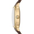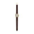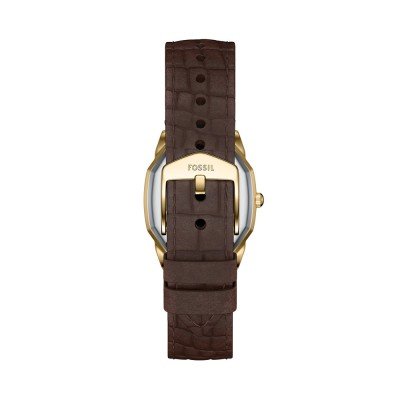 This Fossil watch has a case made of stainless steel with a diameter of 27 mm and is fitted with a leather band. Inside the case lies a Miyota movement and the watch features a Mineral crystal.