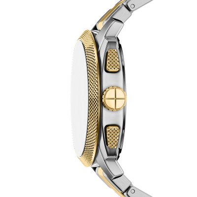 This Fossil watch has a case made of stainless steel with a diameter of 44 mm and is fitted with a stainless steel band. Inside the case lies a Miyota movement and the watch features a Mineral crystal.