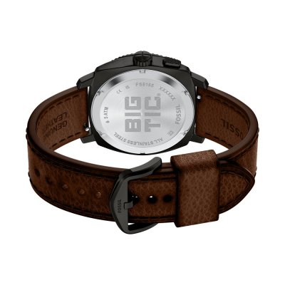 This Fossil watch has a case made of stainless steel with a diameter of 41 mm and is fitted with a leather band. Inside the case lies a Bao Jie movement and the watch features a Mineral crystal.