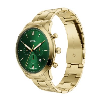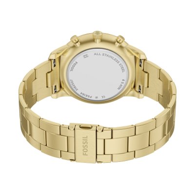 This Fossil watch has a case made of stainless steel with a diameter of 44 mm and is fitted with a stainless steel band. Inside the case lies a Miyota movement and the watch features a Mineral crystal.