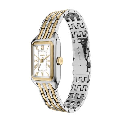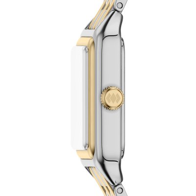 This Fossil watch has a case made of stainless steel with a diameter of 18 mm and is fitted with a stainless steel band. Inside the case lies a Seiko Instruments Inc. movement and the watch features a Mineral crystal.