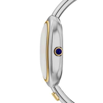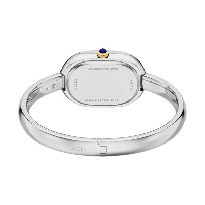 This Fossil watch has a case made of stainless steel with a diameter of 25 mm and is fitted with a stainless steel band. Inside the case lies a Miyota movement and the watch features a Mineral crystal.