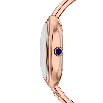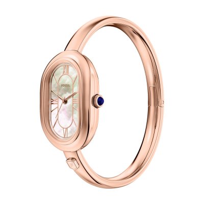 This Fossil watch has a case made of stainless steel with a diameter of 25 mm and is fitted with a stainless steel band. Inside the case lies a Miyota movement and the watch features a Mineral crystal.