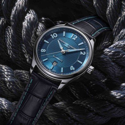 The Riva Historical Society (RHS) was founded in 1988 with the aim of preserving the legendary Riva. A motorboat whose early models, hand-built using wood, embody the relaxed Italian way of life of the 1920s-1960s. In 2013, Frederique Constant and the RHS started a partnership. This gorgeous electric blue, limited to 1888 pieces edition watch comes in a set with miniature wooden replica of a Runabout yacht. Each watch has its individual number engraved on the case back.The watch is powered by an FC-303 automatic caliber (based on the SW200). The 26 jewel Swiss-made caliber, beats at 28’800 times per hour, and hasa 38-hour power reserve. The Runabout watch line expresses the fine craftsmanship and luxury common to both Frederique Constant and Riva and their creations. Transport yourself to the glory days of Italian boating style with this unique and luxurious watch.