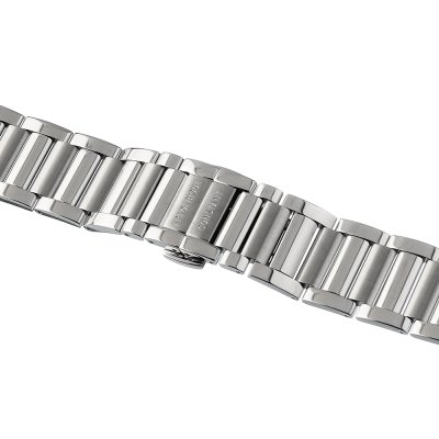 This Frederique Constant watch strap is made of stainless steel and is attached to the watch by means of pushpins. The band has a width of 20 mm and is closed by means of a butterfly clasp with push buttons. The strap has no straight mount which means that this strap is only suitable for the watches listed below.