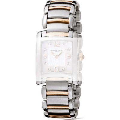 This Frederique Constant watch strap is made of stainless steel and is attached to the watch by means of quick release pushpins. The band has a width of 20 mm and is closed by means of a deployment clasp with push buttons. The strap has no straight mount which means that this strap is only suitable for the watches listed below.
