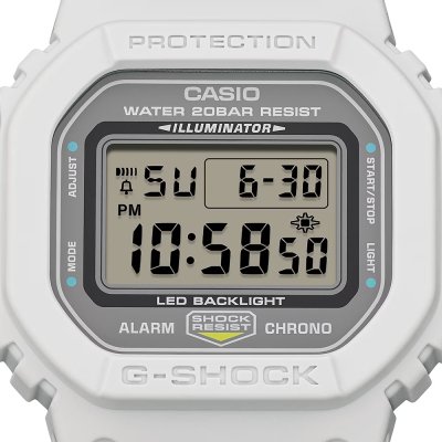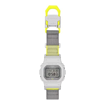 This G-Shock watch has a case made of Bio-sourced resin with a diameter of 42.8 mm and is fitted with a textile band. Inside the case lies a Casio movement and the watch features a Mineral crystal.