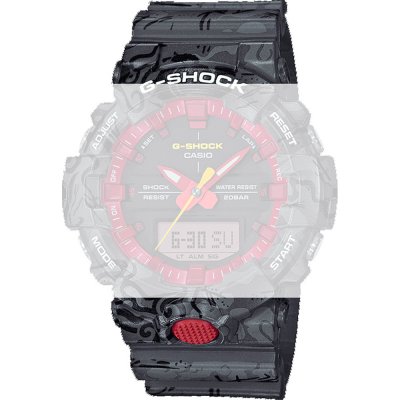 This G-Shock watch strap is made of plastic/Resin and is attached to the watch by means of pushpins. The band has a width of 26 mm and is closed by means of a buckle. The strap has no straight mount which means that this strap is only suitable for the watches listed below.