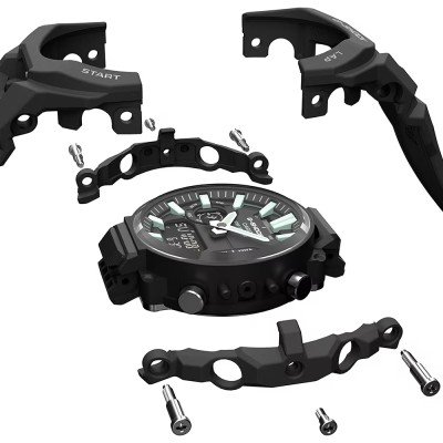This G-Shock watch has a case made of Bio-sourced resin with a diameter of 44 mm and is fitted with a Bio-sourced resin band. Inside the case lies a Casio movement and the watch features a Mineral crystal.