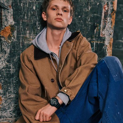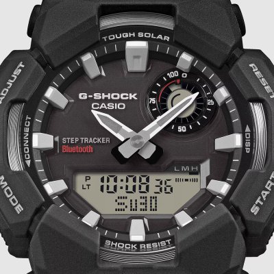 This G-Shock watch has a case made of Bio-sourced resin with a diameter of 49 mm and is fitted with a Bio-sourced resin band. Inside the case lies a Casio movement and the watch features a Mineral crystal.