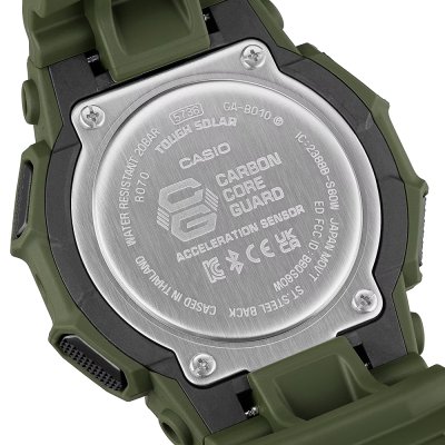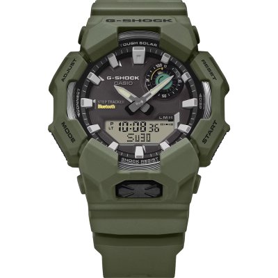 This G-Shock watch has a case made of Bio-sourced resin with a diameter of 49 mm and is fitted with a Bio-sourced resin band. Inside the case lies a Casio movement and the watch features a Mineral crystal.