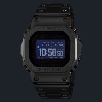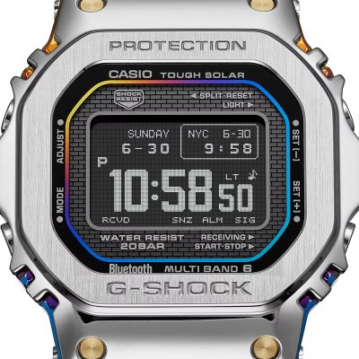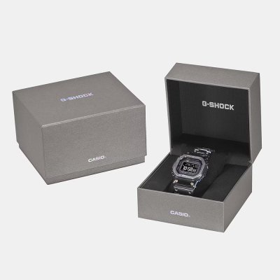 This G-Shock watch has a case made of stainless steel with a diameter of 43.2 mm and is fitted with a stainless steel band. Inside the case lies a Casio movement and the watch features a Mineral crystal.