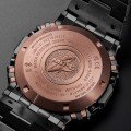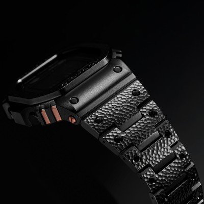 The hammered bezel and band are made from DAT55G, a special titanium alloy from Japan that is three times harder than pure titanium. Each piece is handcrafted by tsuiki master Kazuya Watanabe. The unique pattern of each watch is created by the shape of his chisel and the force with which he strikes. The case has a silver-gray color with a subtle sheen, inspired by traditional sword details. Thanks to a hard DLC coating, that look is also preserved. The copper-colored screws and buttons add a luxurious, striking accent to the design. A powerful statement piece that combines traditional Japanese aesthetics with pure G-SHOCK toughness. This MR-G rightfully belongs among the brand's absolute top models.