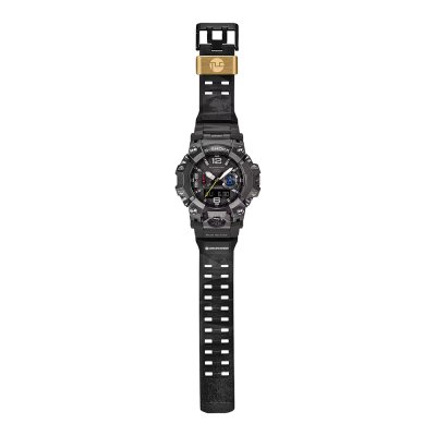 This G-Shock watch has a case made of Stainless steel and carbon with a diameter of 56 mm and is fitted with a Resin band. Inside the case lies a Casio movement and the watch features a Sapphire crystal.