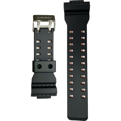 This G-Shock watch strap is made of plastic/Resin and is attached to the watch by means of pushpins. The band has a width of 29 mm and is closed by means of a buckle. The strap has no straight mount which means that this strap is only suitable for the watches listed below.