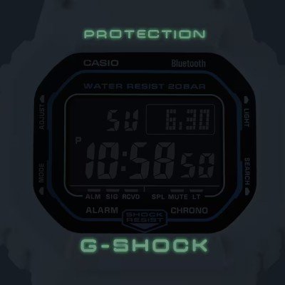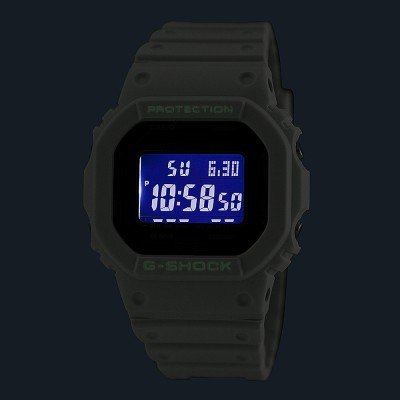 This G-Shock watch has a case made of plastic / resin with a diameter of 42.8 mm and is fitted with a Resin band. Inside the case lies a Casio movement and the watch features a Mineral crystal.
