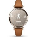 This Garmin watch has a case made of Aluminum with a diameter of 35 mm and is fitted with a leather band. Inside the case lies a Garmin movement and the watch features a Corning Gorilla Glass 3 crystal.