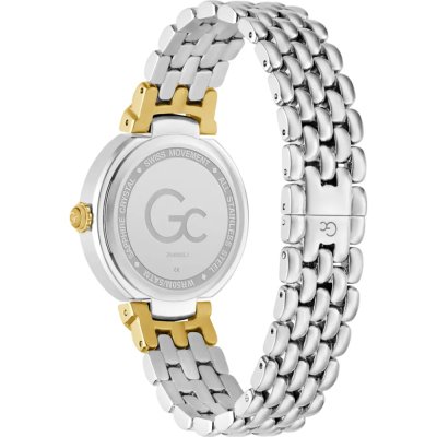 This GC watch has a case made of stainless steel with a diameter of 34 mm and is fitted with a stainless steel band.