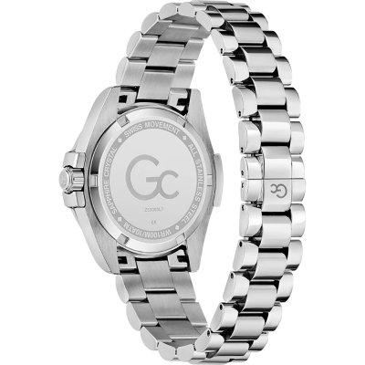 This GC watch has a case made of stainless steel with a diameter of 34 mm and is fitted with a stainless steel band.