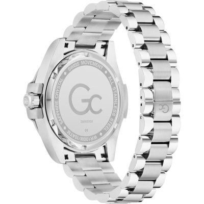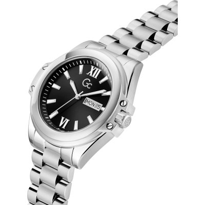 This GC watch has a case made of stainless steel with a diameter of 43 mm and is fitted with a stainless steel band.