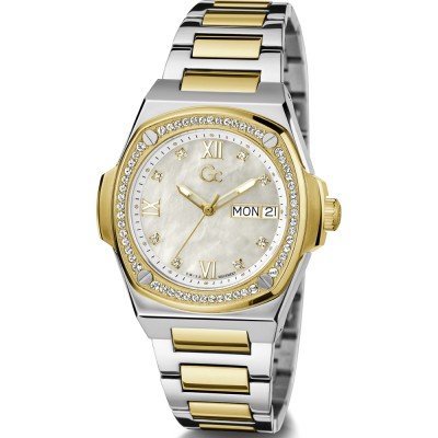 This GC watch has a case made of stainless steel with a diameter of 36 mm and is fitted with a stainless steel band. Inside the case lies a Ronda movement and the watch features a Sapphire coated mineral crystal.