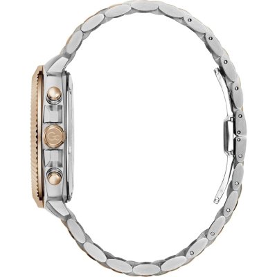 This GC watch has a case made of stainless steel with a diameter of 44 mm and is fitted with a stainless steel band. Inside the case lies a Ronda movement and the watch features a Sapphire coated mineral crystal.