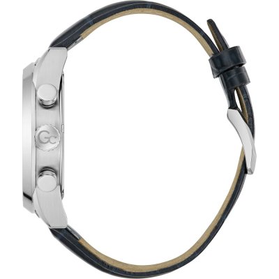 This GC watch has a case made of stainless steel with a diameter of 42 mm and is fitted with a leather band. Inside the case lies a Ronda movement and the watch features a Sapphire crystal.
