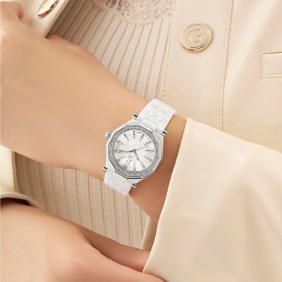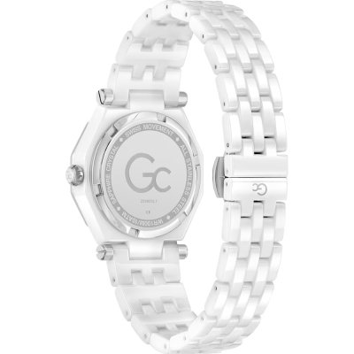 This GC watch has a case made of ceramic with a diameter of 32 mm and is fitted with a ceramic band.
