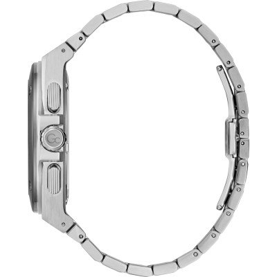 This GC watch has a case made of stainless steel with a diameter of 44 mm and is fitted with a stainless steel band. Inside the case lies a Ronda movement and the watch features a Sapphire coated mineral crystal.