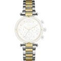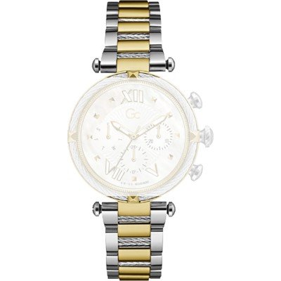 This GC watch strap is made of stainless steel and is attached to the watch by means of saddle screw. The band has a width of 18 mm and is closed by means of a invisible butterfly clasp. The strap has no straight mount which means that this strap is only suitable for the watches listed below.
